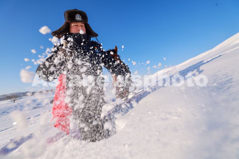 图片说明:2025年2月10日,加郎阿什边境派出所民警正在零下25摄氏度的天气下开展步巡。