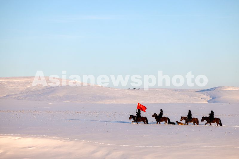 图片说明:2025年2月10日,加郎阿什边境派出所民警正在骑马巡边。