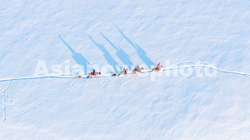 图片说明:2025年2月10日,加郎阿什边境派出所民警正在骑马巡边。