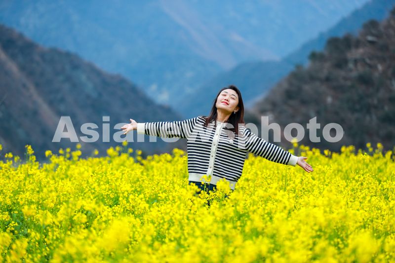 图片说明:2025年2月11日,甘肃省陇南市文县玉垒乡玉垒坪村的油菜花绽放,游客在赏花游玩。