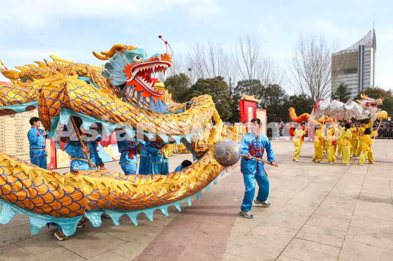 图片说明:2月12日下午,在河南省焦作市龙源湖公园,艺人在非遗精品展演中表演舞龙。