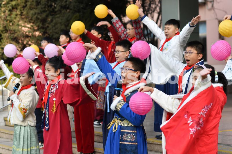 2025年2月14日,学生们在山东青岛四方小学“传统文化润童心”第一课活动上进行古典诗词朗诵。