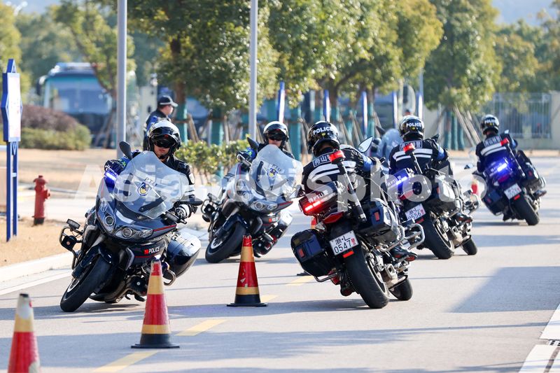 2025年2月18日,浙江省舟山市公安局巡特警支队组织铁骑队员开展Z字形绕桩训练。