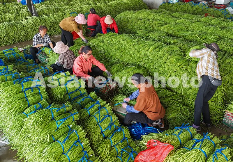图片说明:2025年2月19日,工人在海南省三亚市崖州果蔬批发市场挑选包装当日采摘的新鲜豇豆,准备发往全国各地。