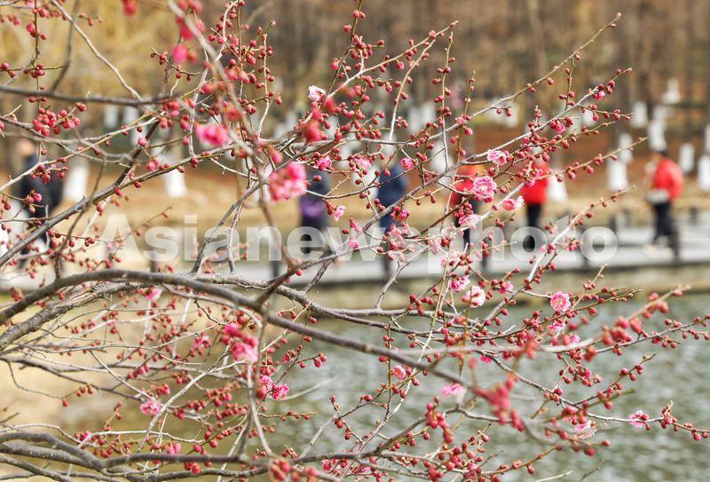 2025年2月20日,游客在江苏省张家港市香山风景区香山梅岭赏梅游玩。早春时节,张家港市香山梅岭300余亩近万株梅花渐次开放,绽放的梅花与园林建筑、山水相映成景,构成了一幅充满生机活力的春日画卷。