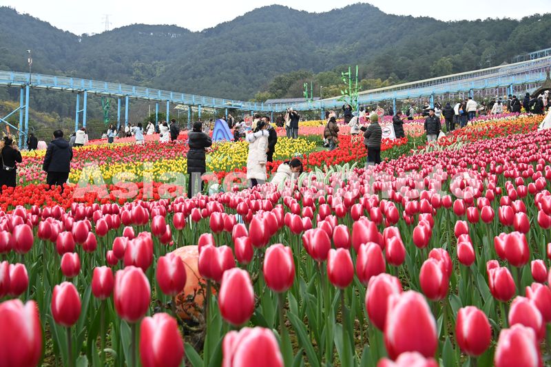 图片说明:2025年2月22日,重庆市沙坪坝区的红岭溪谷景区,游客正在郁金香花海间漫步,乐享美好春光。