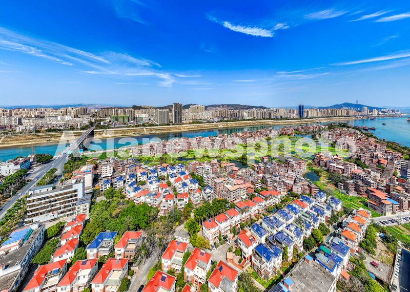 2025年2月24日,广西梧州市长洲区长洲镇,绿色蔬菜生产基地、鱼塘与沿河民居、高楼等构成了一幅美丽的春日城乡新画卷。