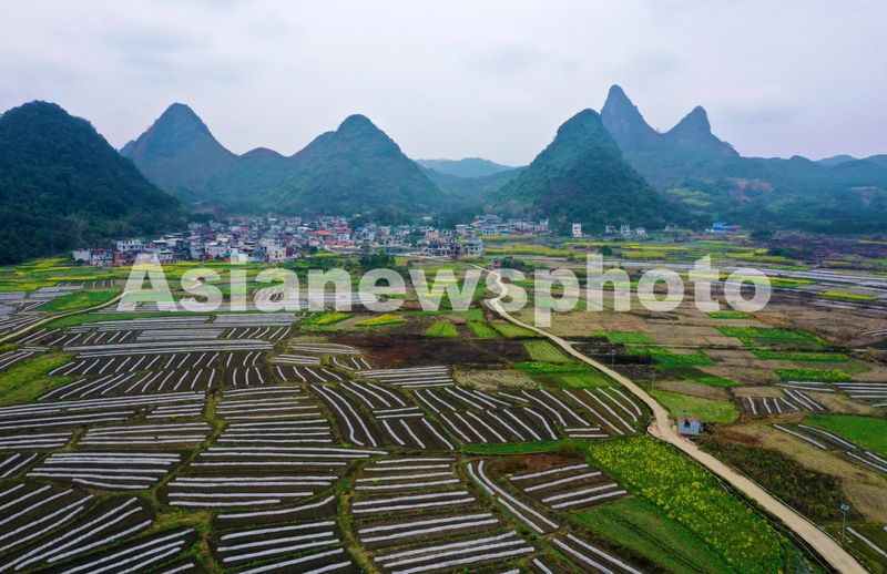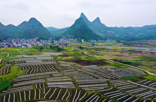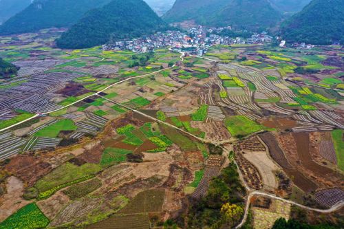 2月26日,在广西融水苗族自治县永乐镇北高村拍摄的新植南瓜种植基地美景。