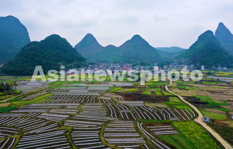 2月26日,在广西融水苗族自治县永乐镇北高村拍摄的新植南瓜种植基地美景。