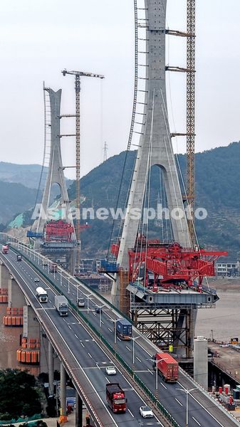 浙江临海:高速公路特大桥建设正酣 查看组图