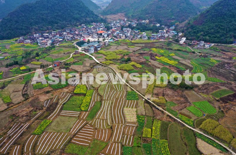 2月26日,在广西融水苗族自治县永乐镇北高村拍摄的新植南瓜种植基地美景。