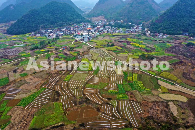 2月26日,在广西融水苗族自治县永乐镇北高村拍摄的新植南瓜种植基地美景。