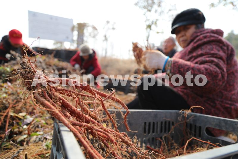 2025年2月26日,河南省南阳市卧龙区龙王沟风景区建设发展中心后庄村,村民正在忙碌地收获丹参。