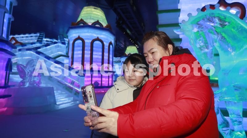图片说明:2025年2月27日,人们在哈尔滨冰雪大世界梦幻冰雪馆内游玩。