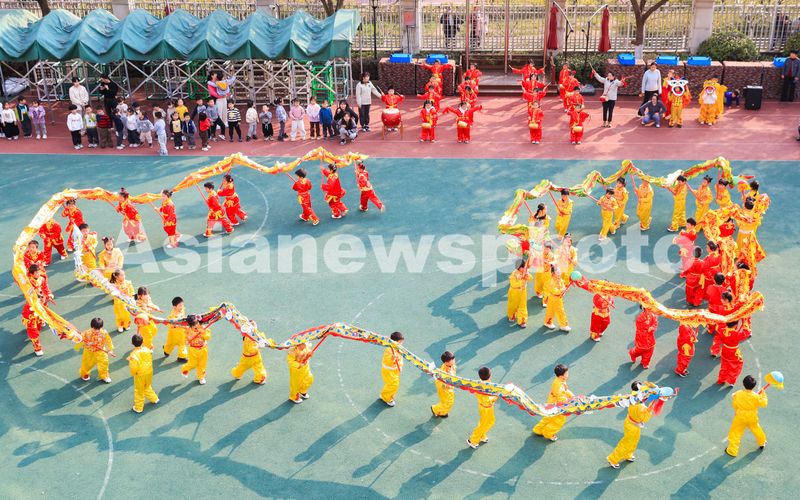 2月28日,南京市雨花台区实验幼儿园善水湾分园的孩子们在进行舞龙表演。