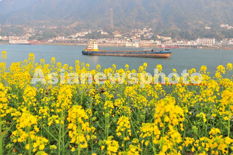 2025年2月28日,在长江西陵峡湖北省宜昌市夷陵区乐天溪段水域,往来货船畅行其中,沿岸的油菜花竞相绽放,为峡江绿水青山风景增添了一抹亮色,在春日里呈现一幅生机盎然的生态画卷。