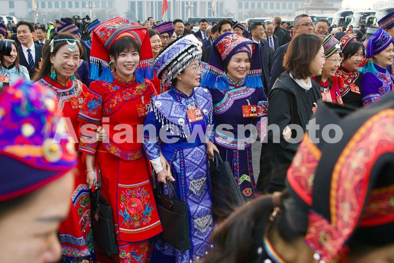 图片说明:开幕会前,全国人大代表步入会场。