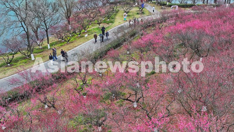 图片说明:2025年3月5日,江苏省张家港市香山风景区香山梅岭近万株梅花进入最佳观赏期,吸引游客前来赏花,亲近自然,感受春天的气息。