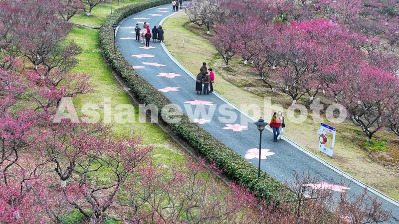 图片说明:2025年3月5日,江苏省张家港市香山风景区香山梅岭近万株梅花进入最佳观赏期,吸引游客前来赏花,亲近自然,感受春天的气息。