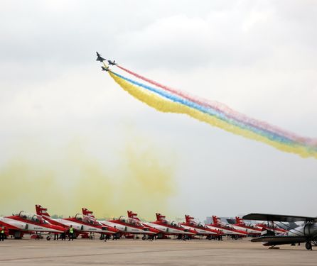 2025年3月7日,应邀赴泰国参加中泰建交50周年暨泰国空军成立88周年庆祝活动的中国空军八一飞行表演队,在泰国廊曼机场进行首场飞行表演。在20多分钟中的飞行表演中,六机编队横滚、利剑回环、四机垂直开花等高难度动作连贯上演,20余个动作精彩纷呈。许多闻讯赶来的当地华侨华人挥舞着中泰两国国旗向天空致意。