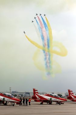 根据主办方安排,空军八一飞行表演队于3月7日和8日分别进行2场飞行表演。