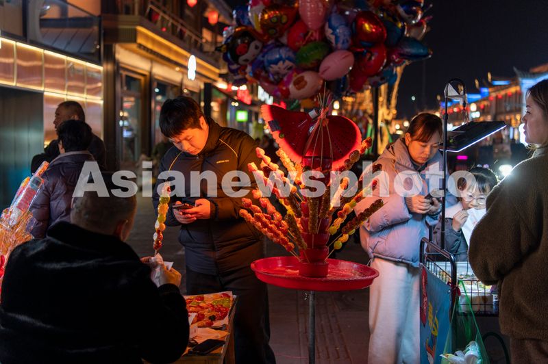 2025年3月8日晚,浙江省金华市,游客在武义古城夜市里休闲购物游玩。