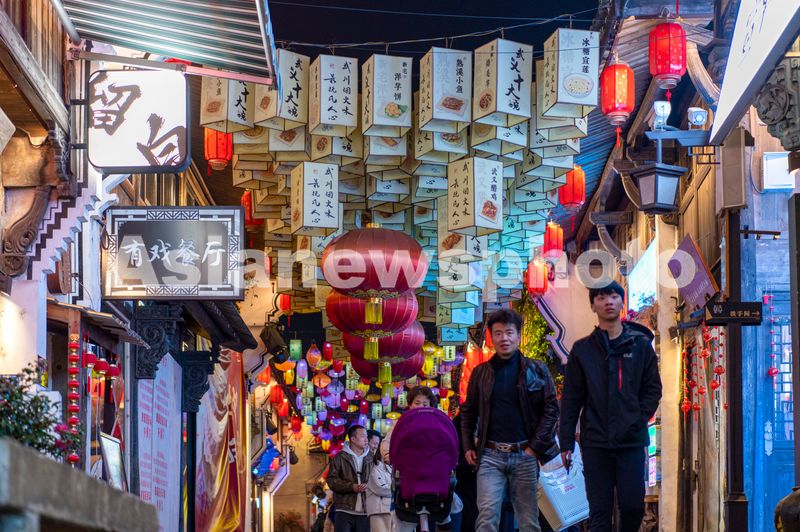 2025年3月8日晚,浙江省金华市,游客在武义古城夜市里休闲购物游玩。