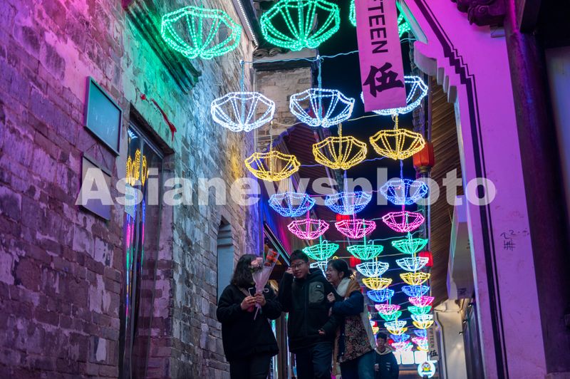 2025年3月8日晚,浙江省金华市,游客在武义古城夜市里休闲购物游玩。