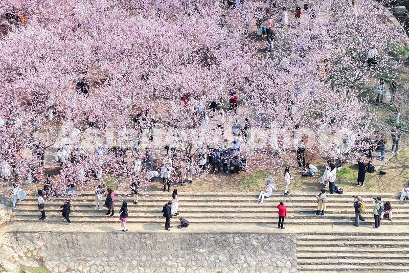 2025年3月8日,南京中山植物园内樱花盛开,风景迷人,吸引许多游客前来踏青赏花,享受美好春光。