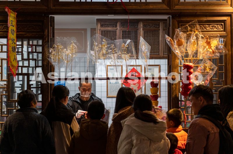 2025年3月8日晚,浙江省金华市,游客在武义古城夜市里休闲购物游玩。