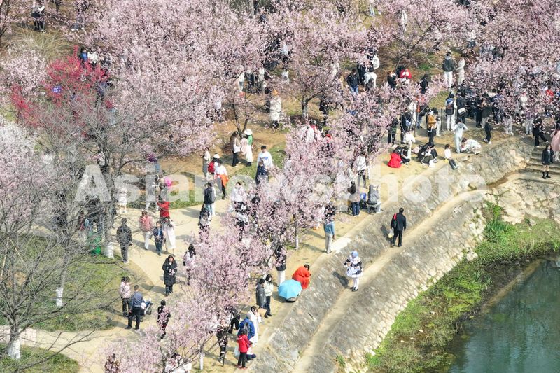 2025年3月8日,南京中山植物园内樱花盛开,风景迷人,吸引许多游客前来踏青赏花,享受美好春光。