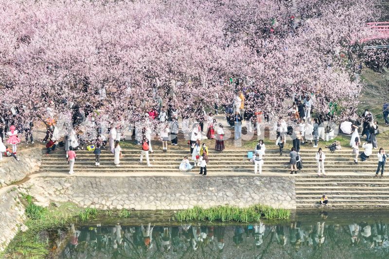 2025年3月8日,南京中山植物园内樱花盛开,风景迷人,吸引许多游客前来踏青赏花,享受美好春光。