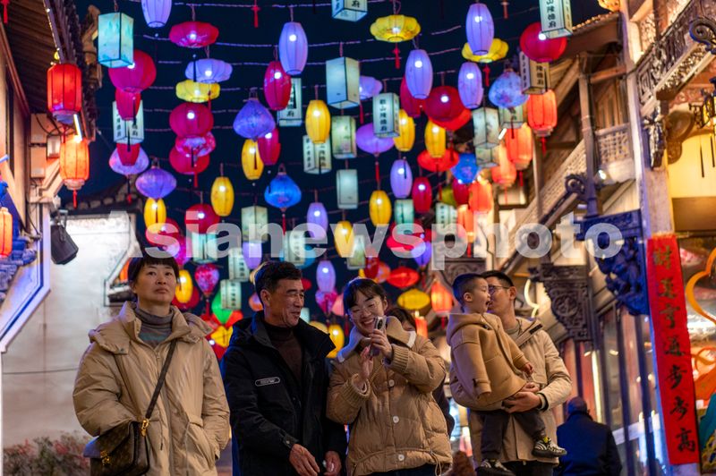 2025年3月8日晚,浙江省金华市,游客在武义古城夜市里休闲购物游玩。