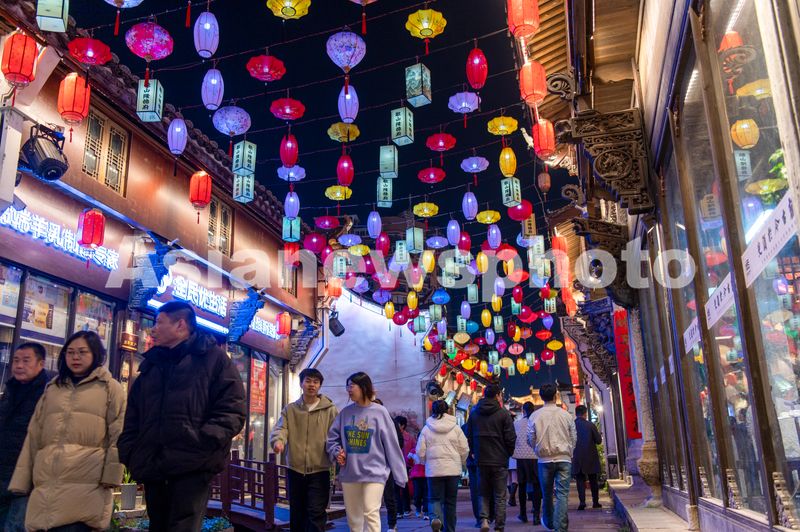 2025年3月8日晚,浙江省金华市,游客在武义古城夜市里休闲购物游玩。