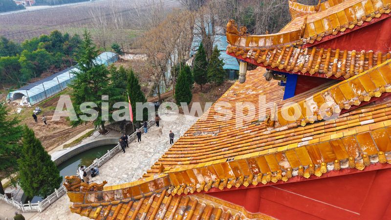 图片说明:2025年3月7日,河南省南阳市西峡县丁河镇奎文村,哪吒祖庙大殿飞檐翘角,雕梁画栋。