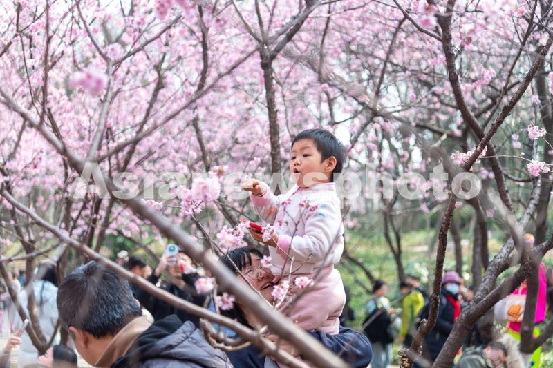 图片说明:2025年3月8日,游客在南京中山植物园赏樱游玩。