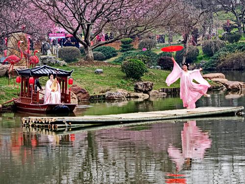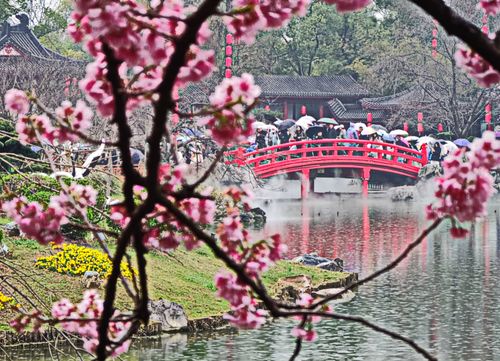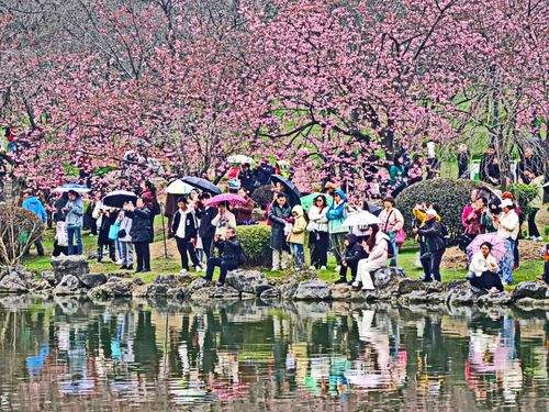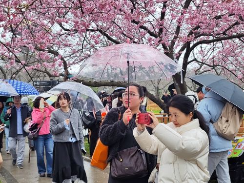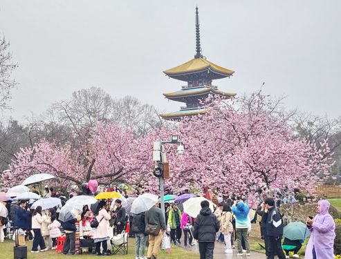 2025年3月9日,湖北武汉东湖樱花园正式开园进入第四天,众多武汉市民和全国外地游客慕名前来,顶风冒雨共赏早期樱花盛开美景。目前东湖樱花园内早樱全都开放,园内有万余株樱花,有染井吉野、大岛、关山等80多个优良品种的樱花,还有全国罕见的"郁金"、"御衣黄"绿樱2个绿樱品种,进入3月中旬盛花期后,将有早中晚不同阶段赏樱观景的无缝衔接。