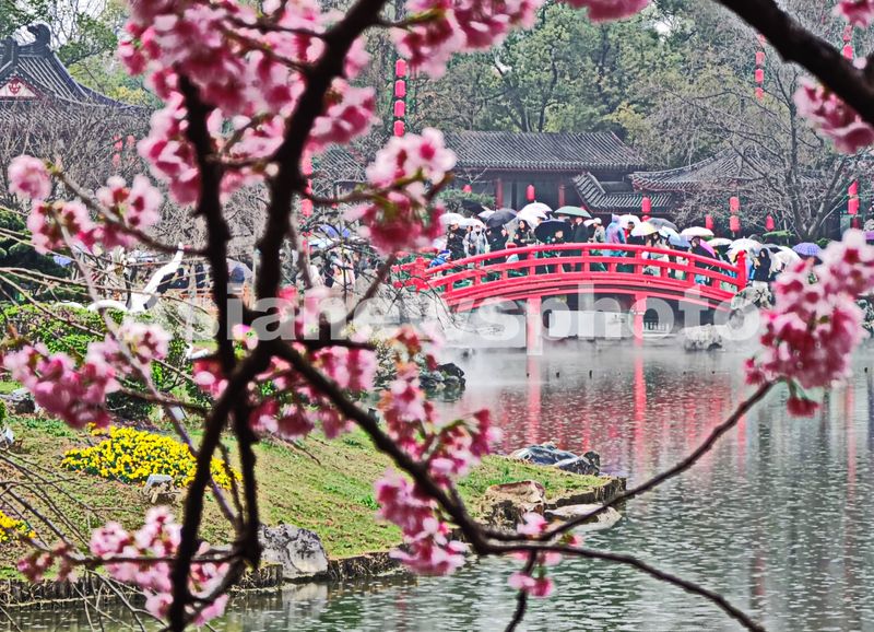 2025年3月9日,湖北武汉东湖樱花园正式开园进入第四天,众多武汉市民和全国外地游客慕名前来,顶风冒雨共赏早期樱花盛开美景。目前东湖樱花园内早樱全都开放,园内有万余株樱花,有染井吉野、大岛、关山等80多个优良品种的樱花,还有全国罕见的"郁金"、"御衣黄"绿樱2个绿樱品种,进入3月中旬盛花期后,将有早中晚不同阶段赏樱观景的无缝衔接。