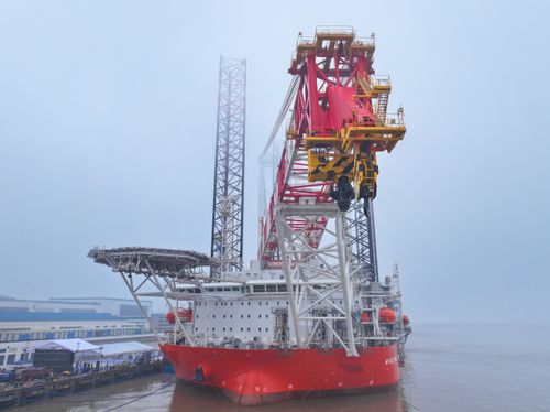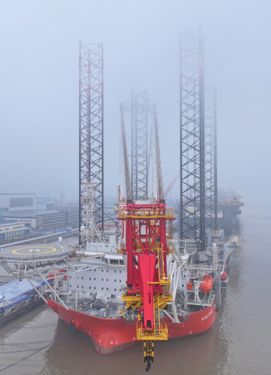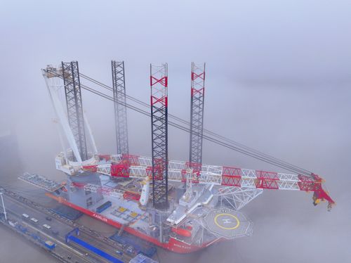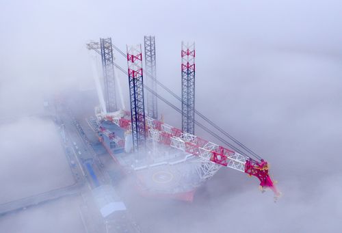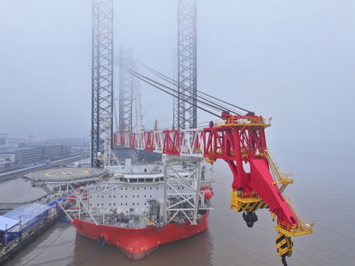 该船拥有5600平方米的甲板空间,有效载荷超过1.76万吨,主吊起重能力超过2500吨,采用油电混合动力,生活区可容纳130人。搭载新一代动态定位系统与智能作业平台,一次可运输并安装7套完整的15兆瓦或5套20兆瓦以上超大型风机,是目前全球技术规格最高、最先进和环保的自升式海上风电安装船。投运后将助力海上绿色能源建设和开发,同时也可以进行海上装备拆除及回收,实现资源循环再利用,助力低碳减排。