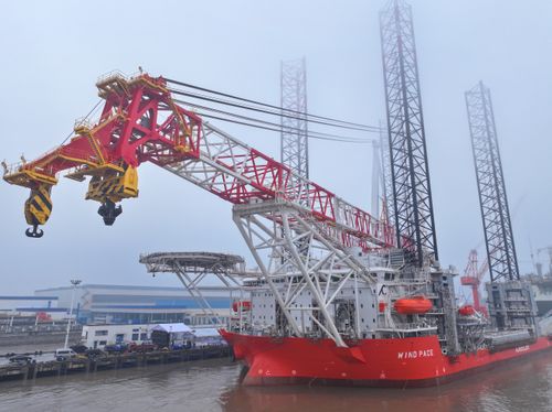 2025年3月12日,启东中远海运海工为丹麦船东定制的NG20000型风电安装船正式命名为Wind Pace。