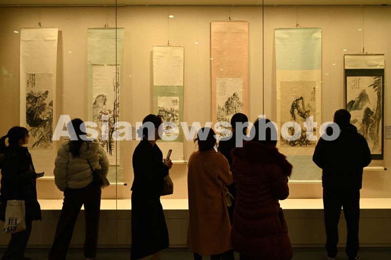 2025年3月11日,广西壮族自治区南宁市,游客正在《百年丹青——二十世纪著名画家作品展》上观展。