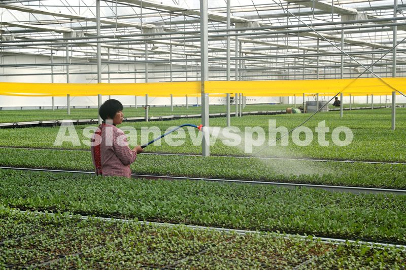 图片说明:2025年3月11日,安徽省亳州市蒙城县一家智慧农业科技产业园大棚内,工人们正在管护甘蓝秧苗。