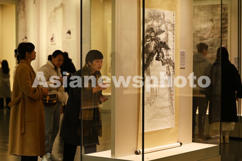 2025年3月11日,广西壮族自治区南宁市,游客正在《百年丹青——二十世纪著名画家作品展》上观展。
