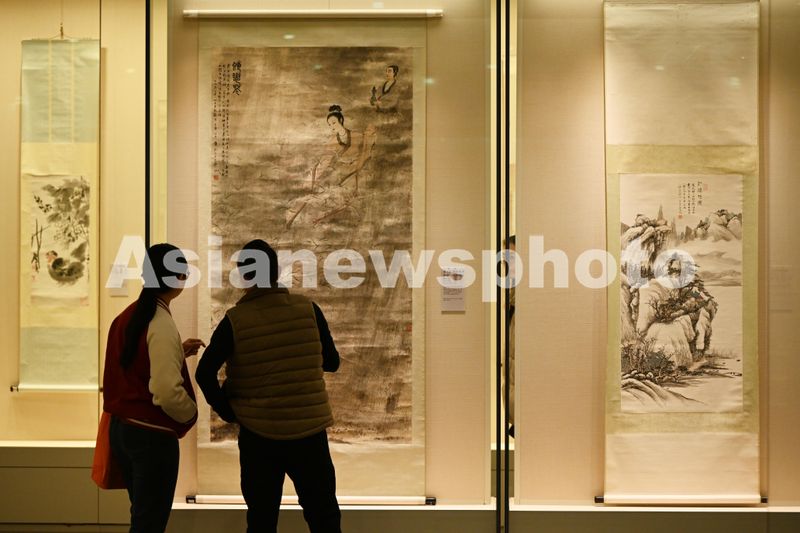 2025年3月11日,广西壮族自治区南宁市,游客正在《百年丹青——二十世纪著名画家作品展》上观展。