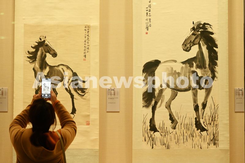 由南宁博物馆和旅顺博物馆联合举办的《百年丹青——二十世纪著名画家作品展》在南宁博物馆二楼艺术特展厅开展。本次展览遴选的70幅国画佳作,出自张大千、吴昌硕、齐白石、徐悲鸿、傅抱石等21位中国美术史上重量级画家之手,包括《岁寒三友图轴》《鱼虾蟹图轴》《奔马图轴》等涵盖山水、花鸟、人物等多元题材,通过作品背后的创作故事与时代背景,带领观众深入感受艺术家们在时代浪潮中的探索与突破。