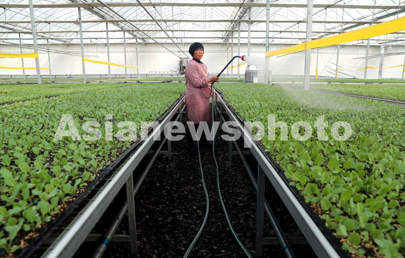 图片说明:2025年3月11日,安徽省亳州市蒙城县一家智慧农业科技产业园大棚内,工人们正在管护甘蓝秧苗。