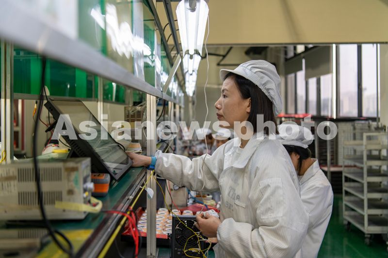 图片说明:2025年3月11日,浙江省金华市浦江三思光电技术有限公司生产线上,工人在检验产品,忙生产赶订单。