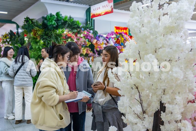 2025年3月12日,在浙江省金华市义乌国际商贸城的仿真花区域,前来选购的外商络绎不绝,显示出强劲的外贸需求。