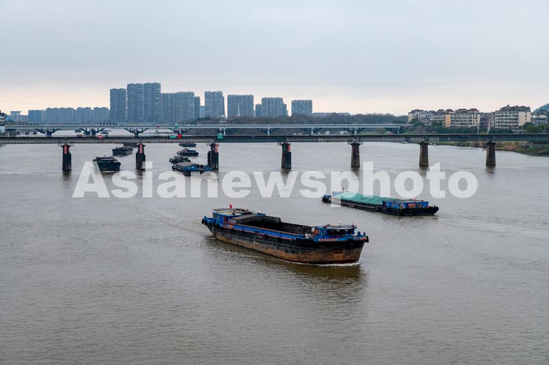 2025年3月13日,浙江金华兰溪境内的钱塘江中上游兰江航道上,装载各类货物的船舶往来穿梭,有序航行,呈现一派繁忙运输景象。