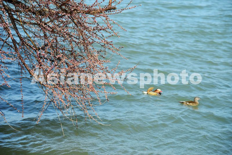2025年3月12日,北京颐和园春和景明,西堤的山桃花盛开,吸引众多游客前来踏青赏花。